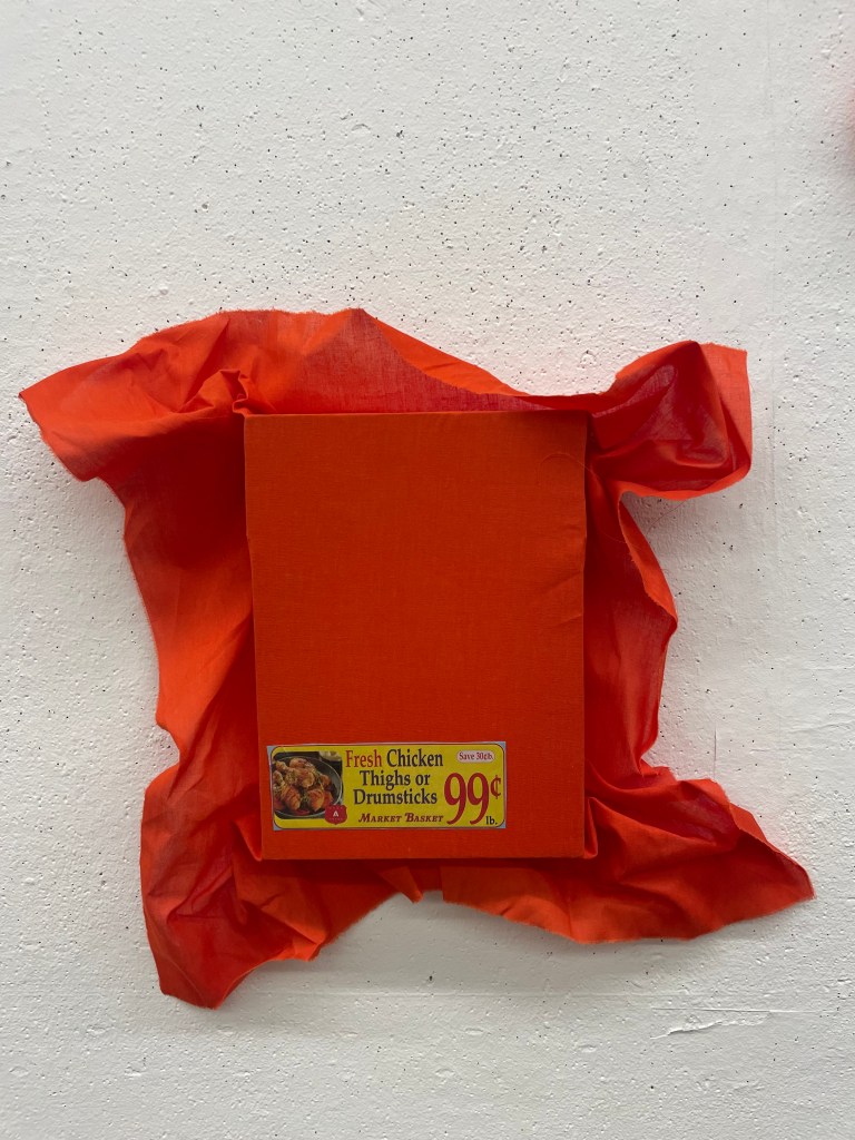 Collage on fabric. ~18” x 6”.